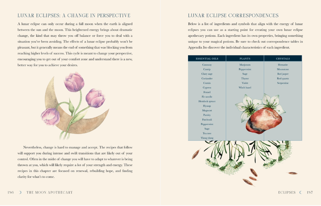 You will also find knowledge and inspiration for creating potions based on the zodiac signs as they apply to the moon, special moon events such as blue moons and eclipses.