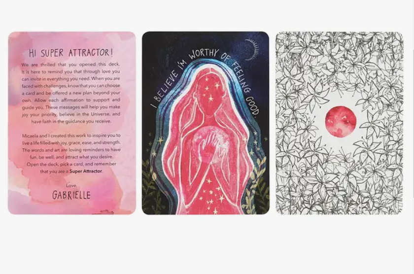 The Super Attractor Oracle card deck by Gabby Bernstein includes a 52-card deck and guidebook.